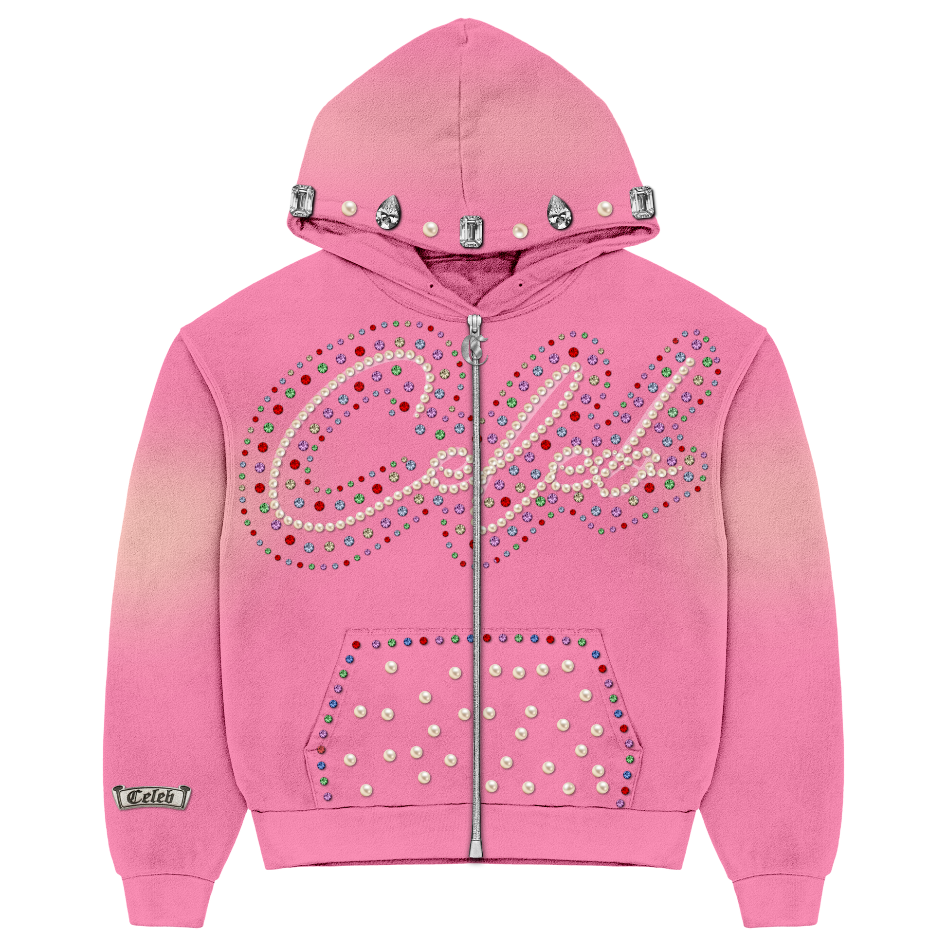 Introducing the CELEB "Bubble Gum" Zip Up—a statement piece that combines playful elegance with sophisticated embellishment. This striking pink jacket features meticulously placed pearls and rhinestones that catch light with every movement, creating an eye-catching shimmer. The full zip closure offers versatile styling options, whether layered over basics or worn as a standalone focal point. Perfect for those who refuse to compromise between comfort and glamour, this piece elevates any wardrobe with its distinctive sparkle and confident color. A true celebration of bold, unapologetic style.